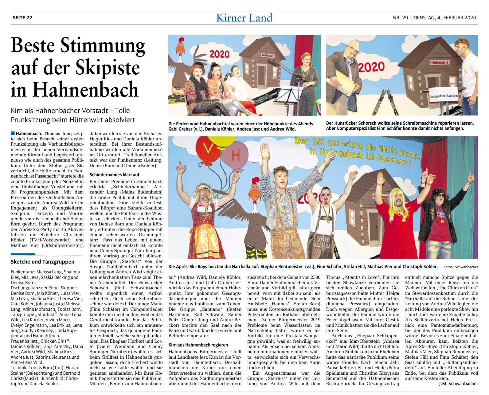 Motto: "Viel Stimmung, Spaß und Heiterkeit - bringt Hahnenbach zur Fassenachts-Zeit !"